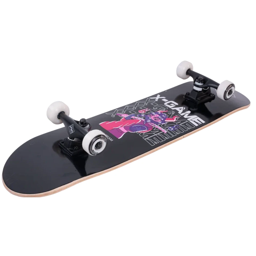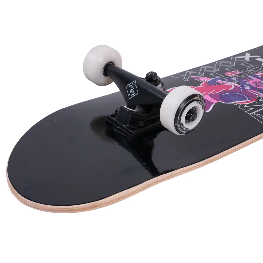 Скейтборд Tech Team X-Game 2024 черного цвета - это сочетание качества, стиля и производительности. Дека из 9 слоев китайского клена с размерами 31"х 8" обеспечивает превосходную прочность и устойчивость. Черная шкурка 80AB на верхней части деки гарантирует отличное сцепление с поверхностью. Стильный принт нижней части деки в черных тонах с розовой девушкой-самураем придает скейтборду уникальный и выразительный облик. Колеса из материала PU размером 52x32 mm и жесткостью 85А обеспечивают отличное управление и плавное катание. Подшипники ABEC 9 гарантируют быстрое и плавное движение. Двойной концевой загиб (Double Kick) деки делает этот скейтборд идеальным для исполнения различных трюков. Это отличный выбор для тех, кто ценит качество и стиль.