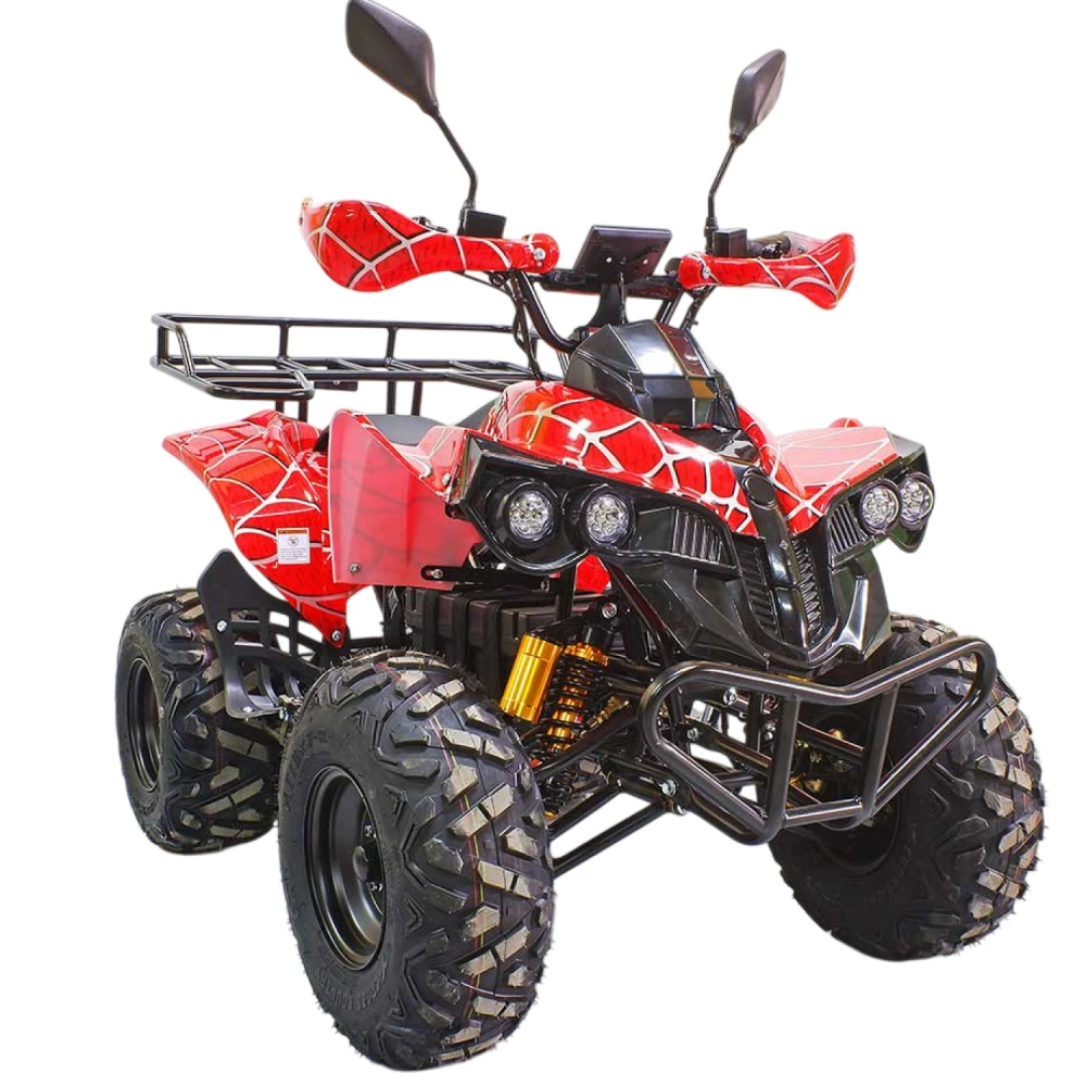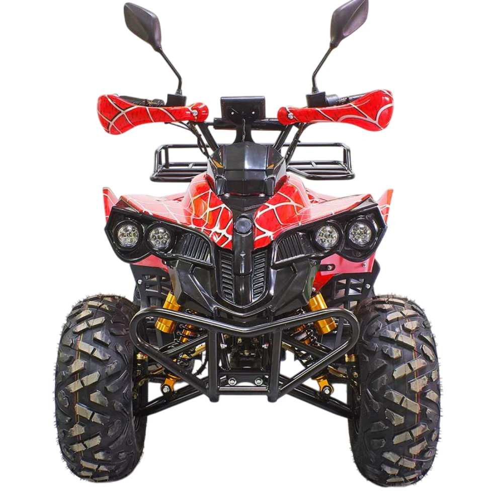 Сложно не отметить и потрясающий дизайн квадроцикла: броский, вкусный, оригинальный. Покраска дополнительно подчёркивает это: ярко-красная с узором в виде серебристой паутины (напоминает костюм Человека-паука).