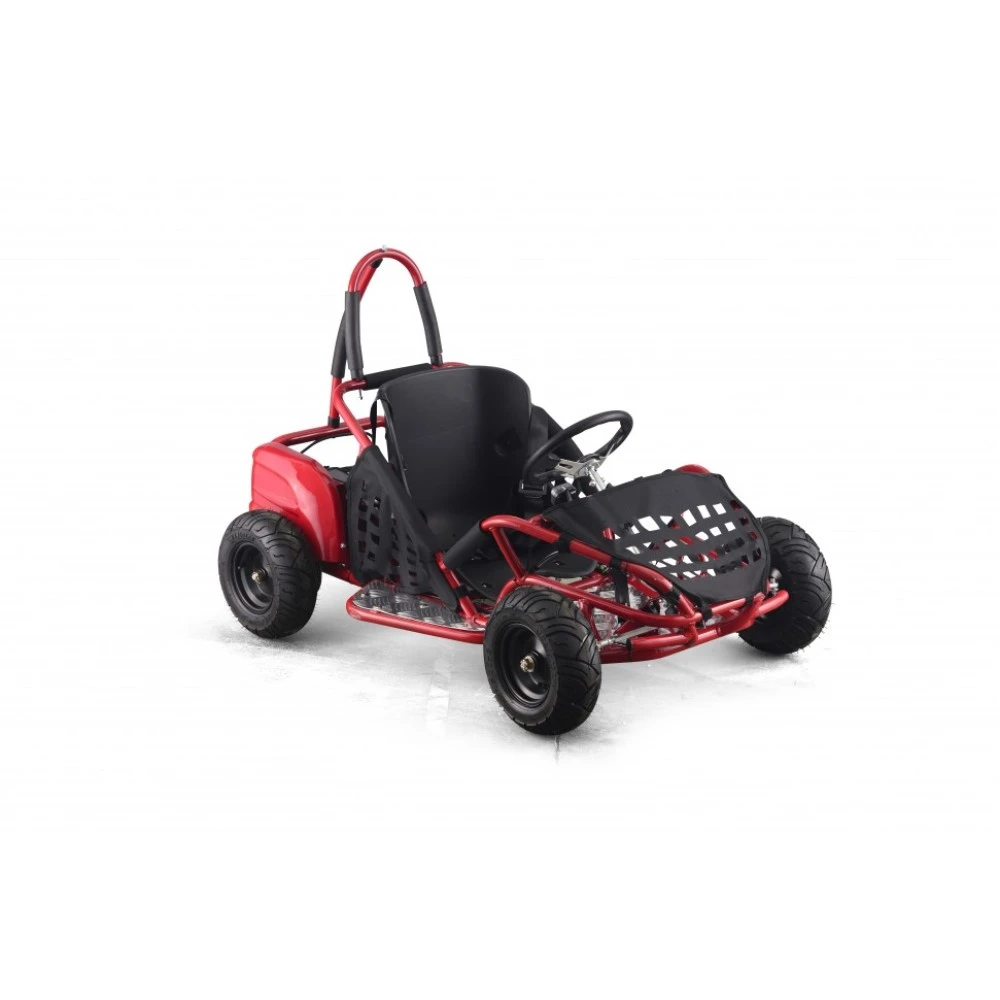Общая масса машины – 35 кг, максимальная грузоподъемность – 60 кг. Компактные эргономичные размеры техники позволяют транспортировать багги другими способами. При мощности мотора 1000 Вт техника способна развивать скорость до 35 км/час и преодолевать расстояние до 25 км. Обратите внимание на посадку. Сиденье изготовлено так, чтобы ездок ощущал комфорт и безопасность передвижения, а родители юного гонщика не переживали за него. При этом дополнительные аксессуары защиты для ребенка не станут лишними.
