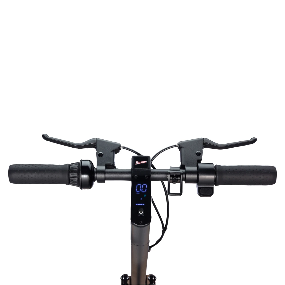 YOKAMURA i8 Pro Monorim чёрного цвета — брутальный самокат для уверенного в себе человека, сильный (мощность двигателей 500Вт*2) и умный — встроенный компьютер с ярким информационным дисплеем, расположенным на рулевой стойке, проконтролирует и отобразит все важные показатели — скорость, остаток заряда и т.д.