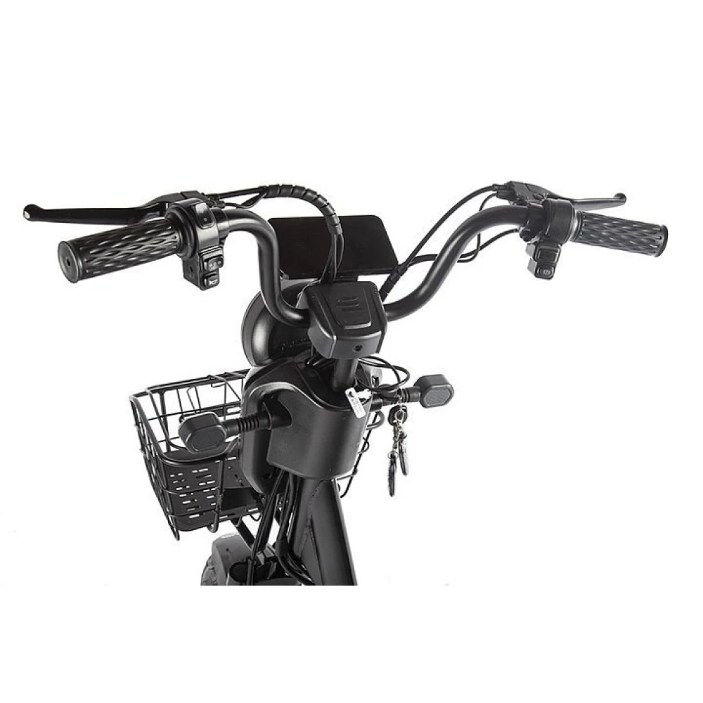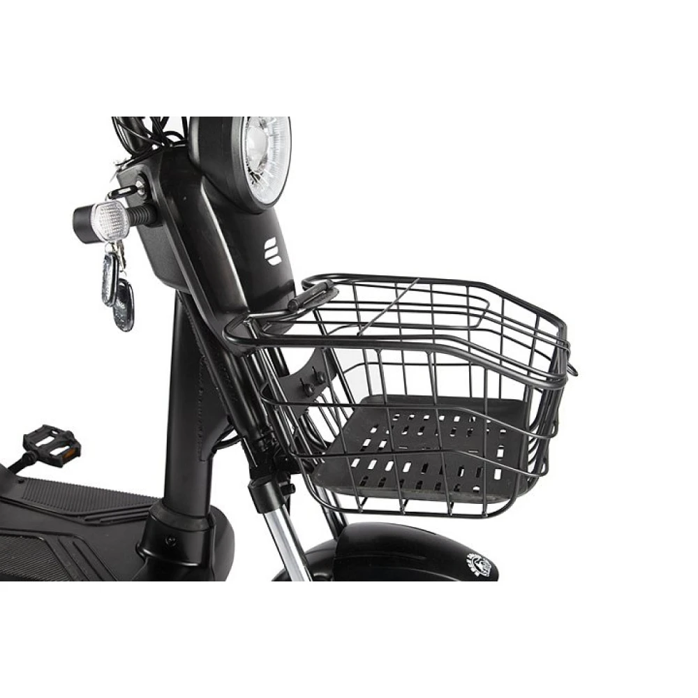 Модель прочная и надежная. Рама изготовлена из стали, не теряет первоначальных характеристик при эксплуатации в жестких условий. Дополнительные элементы в виде передней светодиодной фары, жк-дисплея, корзины позволяют контролировать заряд батареи, передвигаться в ночное время и непогоду, использовать технику в качестве ежедневного вида транспорта. Для заказа и покупке товара по цене производителя предлагаем связаться с менеджером интернет-магазина по телефону или в онлайн-режиме.