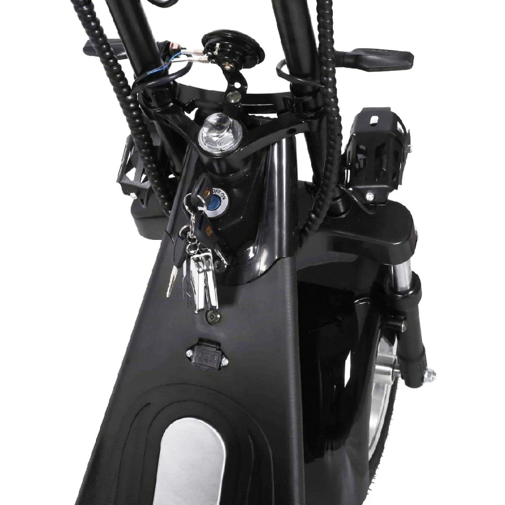 Электроскутер Citycoco Kugoo C6 – обновленный вариант бренда занимает лидирующие позиции в продажах. Брутальный кричащий дизайн заинтересовал райдеров-экстремалов и любителей рыбалки. Широкая отлично сцепляемые шины обещают отличную проходимость и отсутствие проблем в дороге. Техника создана для езды по бездорожью, не разочарует при преодолении небольших препятствий и путешествии по лесным тропинкам.