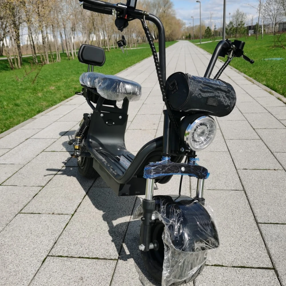 ЭЛЕКТРОСКУТЕР CityCoco WOLONG C2 PRO+ - комфортная современная техника рассчитана на водителя и пассажира. Оснащена анатомическим седлом, пассажирское – с мягкой спинкой. Широкая нескользящая платформа, максимальный функционал, наличие бортового компьютера предрасполагают к безопасному активному отдыху. При мощности электромотора в 800 Вт максимально допустимая скорость составляет 30 км/час. 10-дюймовые колеса рассчитаны на езду по ровной и пересеченной местности. Максимальная грузоподъемность составляет 150 кг. Тест драйв доказал совершенство модели и высокий уровень комфорта.