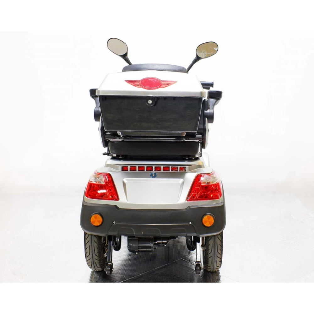 При весе 126 кг выдерживает максимальную грузоподъемность до 150 кг, рассчитанную на пользователей с лишней массой тела. Передняя и задняя кофра – вместительные, высвобождают руки райдера, позволяют перевозить дополнительные грузы, покупки и инструменты. Широкий накатистые колеса и фирменная амортизационная система делают езду плавной, исключает вибрацию. Для заказа тс сейчас, без посредников, предлагаем стать покупателями нашего интернет-магазина.