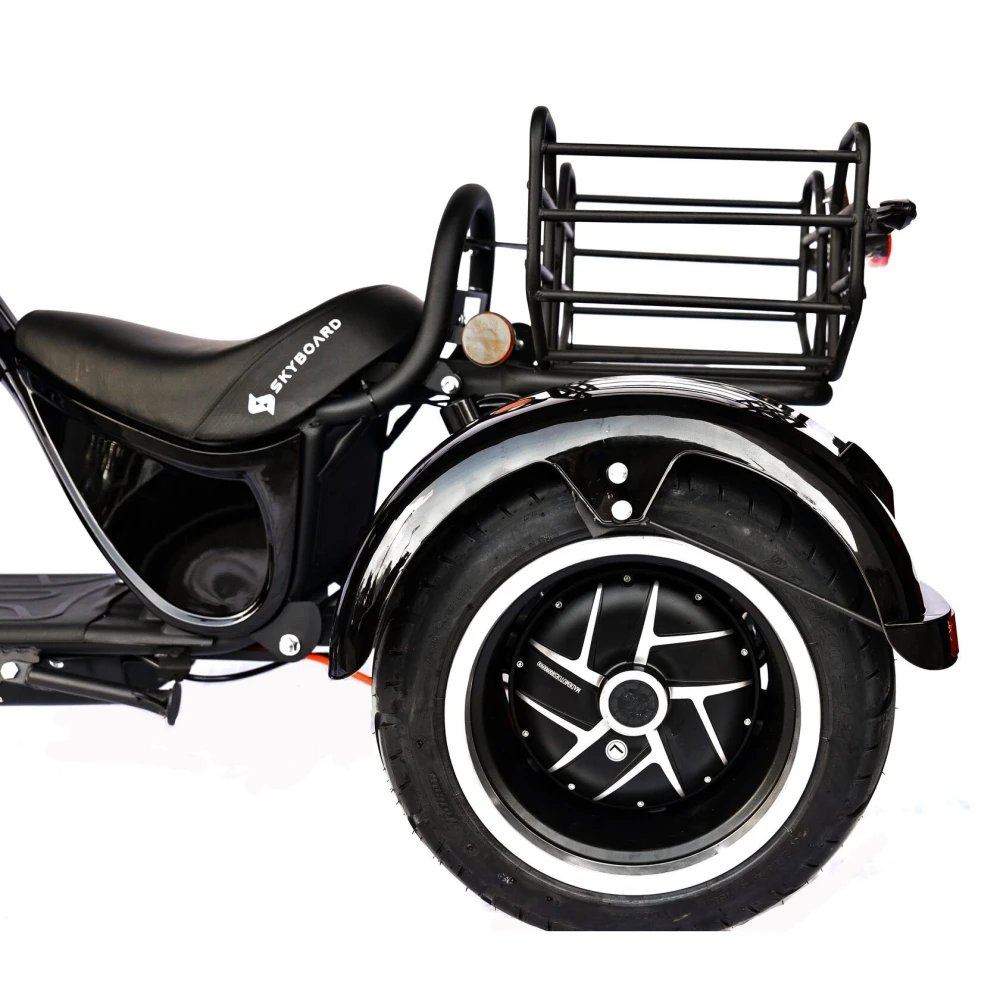 Трехколесный гибрид рассчитан для езды в пределах города и частного сектора. При мощности мотор-колес в 2000 Вт каждое модель способна развить скорость до 73 км/час и преодолеть расстояние до 49 км. Техника оснащена объемной корзиной, удобной для клади. Своевременность остановки гарантирована наличием профессиональной гидравлической тормозной системой. Удобство движения обеспечены большим комфортабельным седлом, повторяющим анатомические части тела и широкой платформой для ног. Практический опыт пользователей доказывает, усталость и проблемы с позвоночником при дальней езде исчезают.