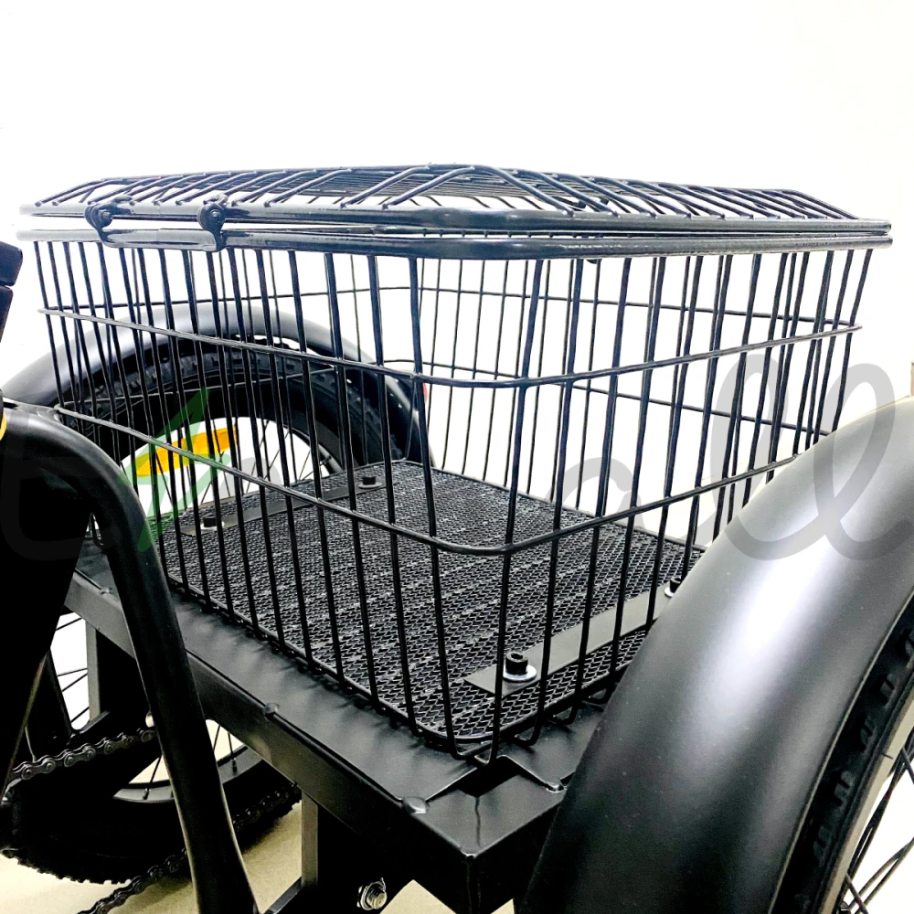 ТРИЦИКЛ ELTRECO PORTER FAT 500 UP! работает от долговечной аккумуляторной батареи. Если она разрядилась, трицикл сможет проехать еще до 40 км на резерве. Имеет стильные светодиодные фары, стальные полноразмерные крылья. Впереди на руле расположена легкая корзина, сзади – большая вместительная.