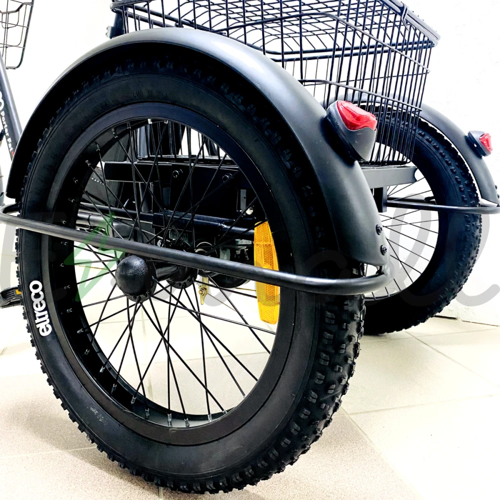 ТРИЦИКЛ ELTRECO PORTER FAT 700 – это самый мощный грузовой электровелосипед. Оснащен мощным электродвигателем в 700W, устойчивый и надежный в езде. Он справится с любой трудной задачей. Его можно эксплуатировать на даче, на придомовом участке, при перевозке продуктов или небольших грузов. Он комфортен даже в обычной велопрогулке, в багажнике можно разместить рюкзак/сумку, необходимый инвентарь.