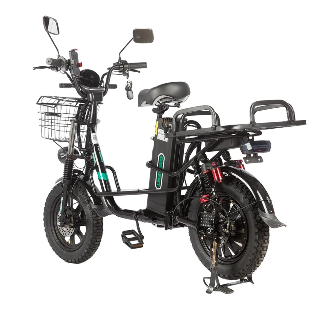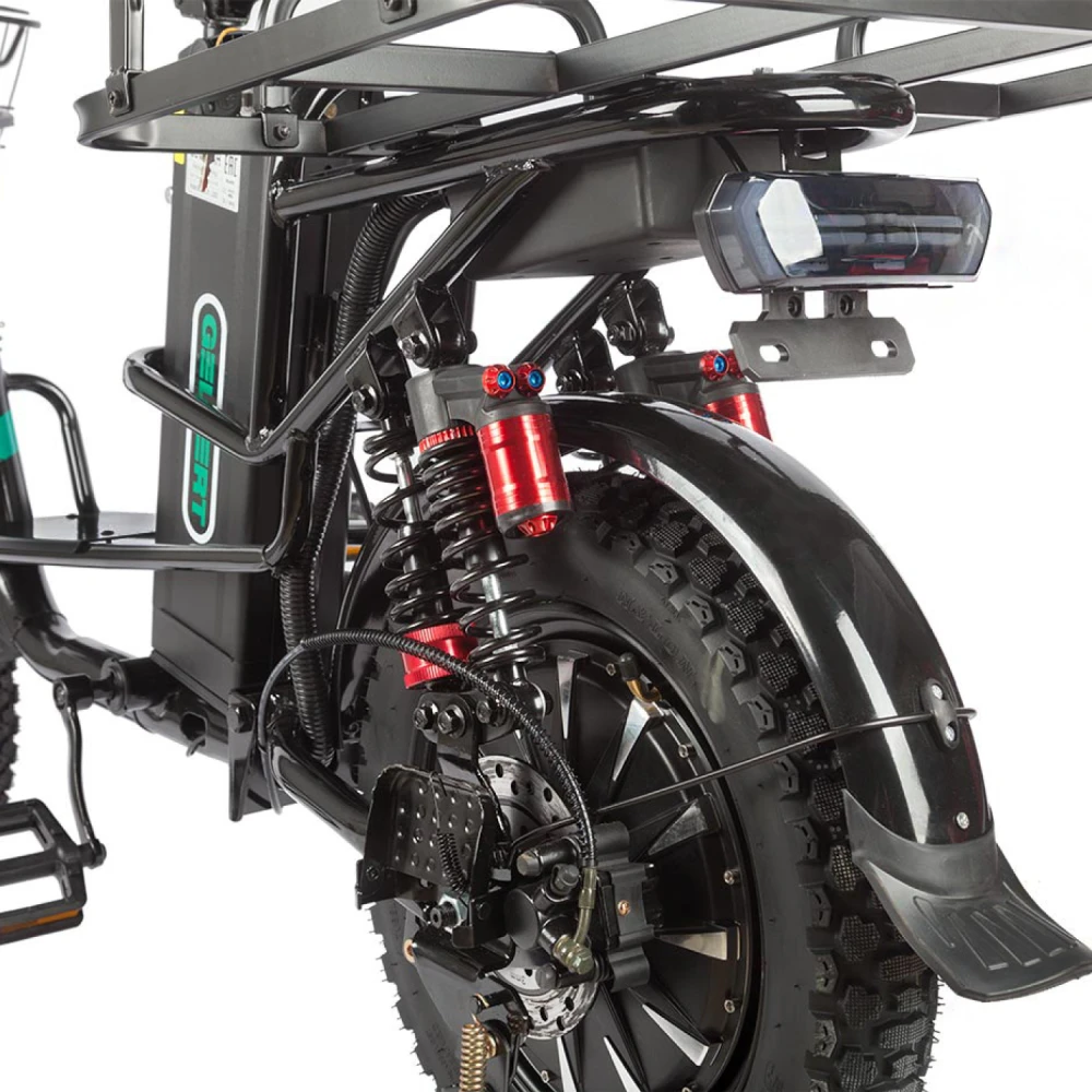 Электровелосипед Eltreco Gelbert Khan Monster 2 – это современное средство передвижения, сочетающее в себе продуманную конструкцию, передовые технологии и стильный дизайн для уверенных городских и пригородных поездок.Модель оснащена передним и задним амортизаторами, которые эффективно смягчают неровности дороги, обеспечивая плавность хода и комфорт даже на пересеченной местности. При заявленном максимальном пробеге до 100 км на одном заряде этот велосипед подходит для длительных поездок – конечно, реальные показатели зависят от веса райдера, рельефа местности, погодных условий и температуры окружающей среды.Безопасность обеспечивается за счет дисковых гидравлических тормозов, которые гарантируют надежное и своевременное торможение в любых ситуациях. Легкий вес в 57 кг позволяет легко маневрировать, а максимальная нагрузка до 150 кг делает модель универсальной для разных категорий пользователей.Двигатель мощностью 240 W, размещенный в задней части, обеспечивает эффективное ускорение и оптимальное распределение энергии, что способствует стабильной работе в условиях городской среды. Электровелосипед оборудован аккумулятором с емкостью 30 Ah и рабочим напряжением 60 V, что гарантирует долгий срок службы батареи и надежную работу даже на длинных маршрутах.Габариты в собранном состоянии – 1700×1150×800 мм – обеспечивают удобное расположение для водителя, а использование качественной стали в конструкции гарантирует долговечность и надежность всей системы. Дополнительное оснащение включает зеркала заднего вида, которые повышают безопасность, а встроенные передние и задние габаритные фары обеспечивают отличную видимость в условиях недостаточной освещенности.Стоит отметить, что данная модель не является складной, что подчеркивает ее прочную и стабильную конструкцию, рассчитанную на долгосрочную эксплуатацию. Электровелосипед Eltreco Gelbert Khan Monster 2 – это оптимальное решение для тех, кто ищет сочетание высоких технологий, надежности и комфорта в одном устройстве.