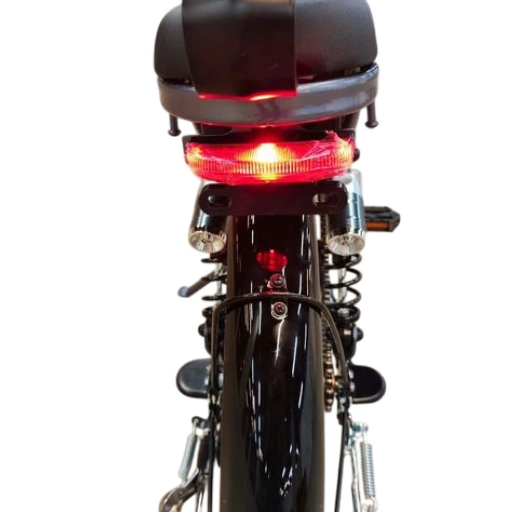 Педали (возможность ехать как обычный велосипед), быстросъёмный аккумулятор, гидравлические тормоза, высокая грузоподъёмность до 300 кг, 3 режима езды, базовая комплектация (свет, зеркала, поворотники).