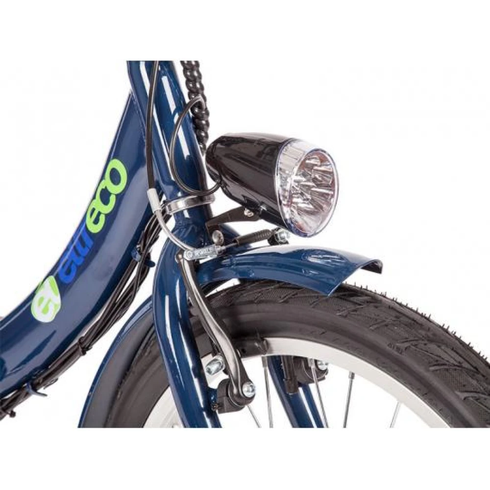 Электровелосипед Eltreco Amigo оснащен усиленным багажником, есть внешнее световое освещение, яркая фара впереди и стоп-сигнал сзади.