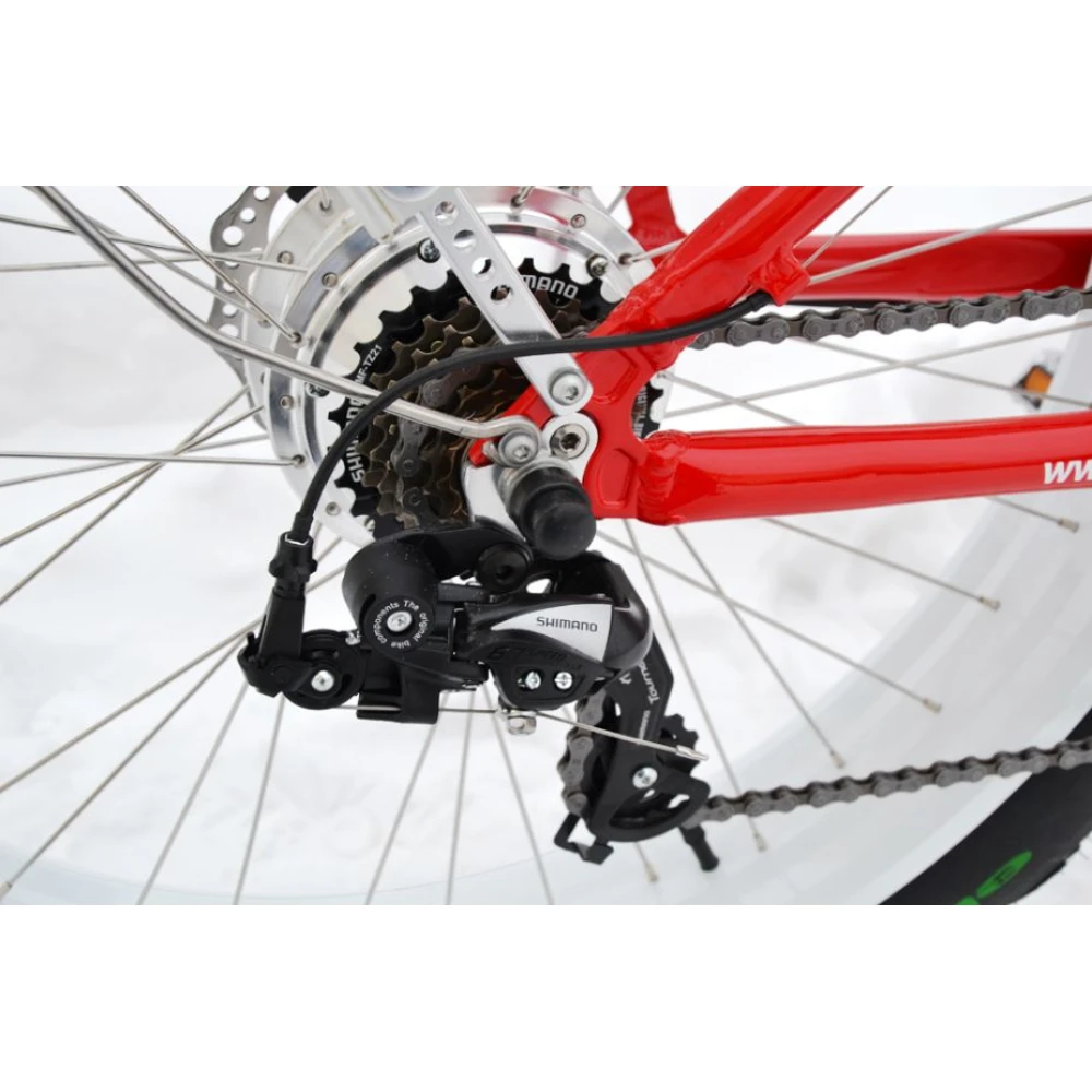 Очень широкие колеса диаметром 27.5 дюймов, амортизация вилки и сиденья делают езду на фэтбайке Ferrari комфортным, сглаживают воздействие неровностей дорожного покрытия на транспорт.
