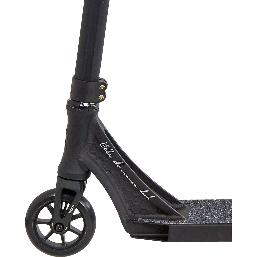Трюковой самокат Ethic Erawan (черный) от известного французского бренда предлагает купить наш магазин. Модель предназначена для начинающих и опытных райдеров, собрана из оригинальных запчастей. Стоимость самоката, приемлемая, нравится всем клиентам без исключения. Предлагаем разобраться с техническими характеристиками и особенностями: