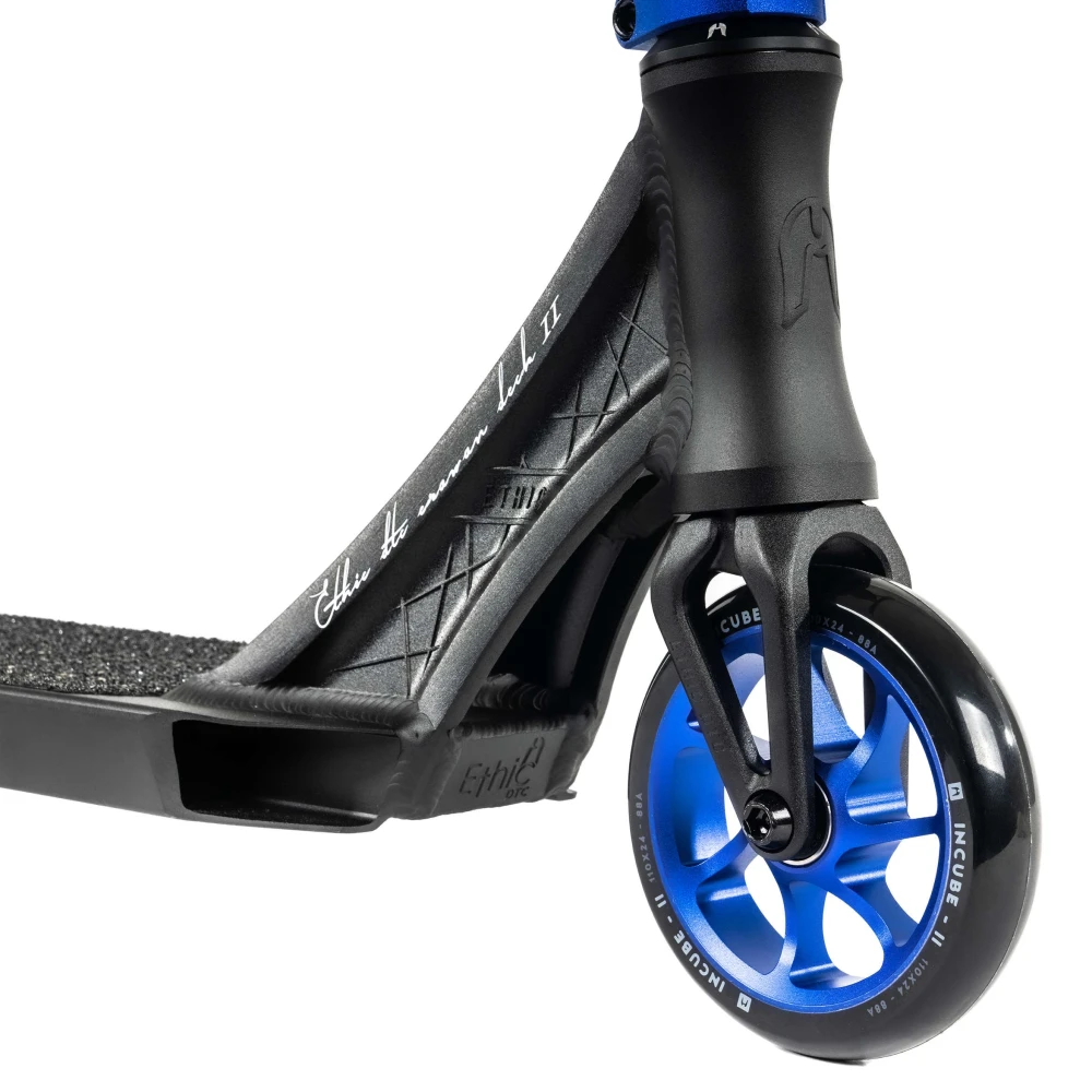 Этот самокат совмещает в себе классическую строгость черного цвета с яркими акцентами синего, что делает его уникальным выбором для тех, кто не боится выделяться. С весом всего 2.79 кг, он обеспечивает непревзойденную легкость и маневренность, позволяя вам покорять новые вершины в мире трюков. Диаметр колес 110 мм и подшипники класса ABEC 9 гарантируют плавность и скорость, делая каждую поездку комфортной и безопасной.