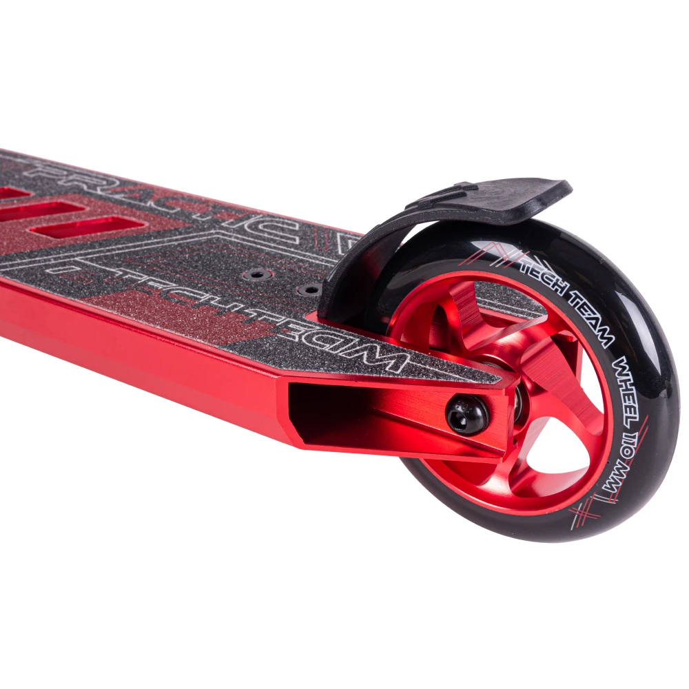 Дека изготовлена из алюминиевого сплава 6061 и имеет данные габарты: 49х11,5см, футспейс 34см. Нововведением считаются вырезы, которые сделали внешний вид самоката более дерзким. Тормоз из нейлона и стали отлично справляется со своим предназначением.